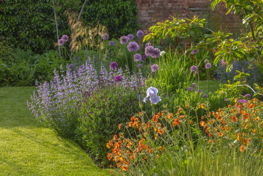 Consider whether your borders have year-round interest and – if not – add later-flowering plants for late colour. This will benefit the birds, insects and other wildlife visiting your garden too. Some of my favourites for late flowers are: Hydrangea arborescens Strong Annabelle (the flowers are white but huge and impactful), Geum Totally Tangerine (with soft tangerine flowers which continue until the first frosts) and Salvia nemorosa ‘Caradonna’ (with masses of violet flowers) and Nepeta racemosa ‘Walker’s Low’ (also known as Catmint).